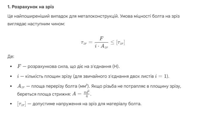 Поширені запитання (F.A.Q.) про розрахунок болтових з'єднань